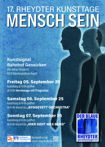 Am 9. Mai 2025 ist die Holocoust-Überlebende Margot Friedländer im Alter von 103 Jahren gestorben. Ihr geistiges Erbe hat den Künstlerverein Der Blaue Rheydter zu dem Motto der 17. Rheydter Kunsttage „MENSCH SEIN“ inspiriert. „Besonders in unseren aktuellen Zeiten müssen wir uns bewusst machen, wie wichtig es ist, Empathie und Verständnis füreinander zu entwickeln. Die Auseinandersetzung mit dem Thema „Mensch Sein“ lehrt uns, dass wir trotz unserer Unterschiede ein gemeinsames Band teilen“, begrüßt die Schirmherrin Christiane Schüßler, Kulturdezernentin der Stadt Mönchengladbach, das diesjährige Motto der Rheydter Kunsttage. „Jeder von uns hat seine eigenen Kämpfe und Triumphe, und die Kunst bietet uns einen Raum, um diese miteinander zu teilen. In den Werken finden wir vielleicht einen Teil von uns selbst wieder; Gedanken und Gefühle, die wir oft nicht in Worte fassen können, manifestieren sich hier in Formen und Farben.“